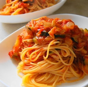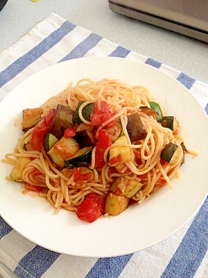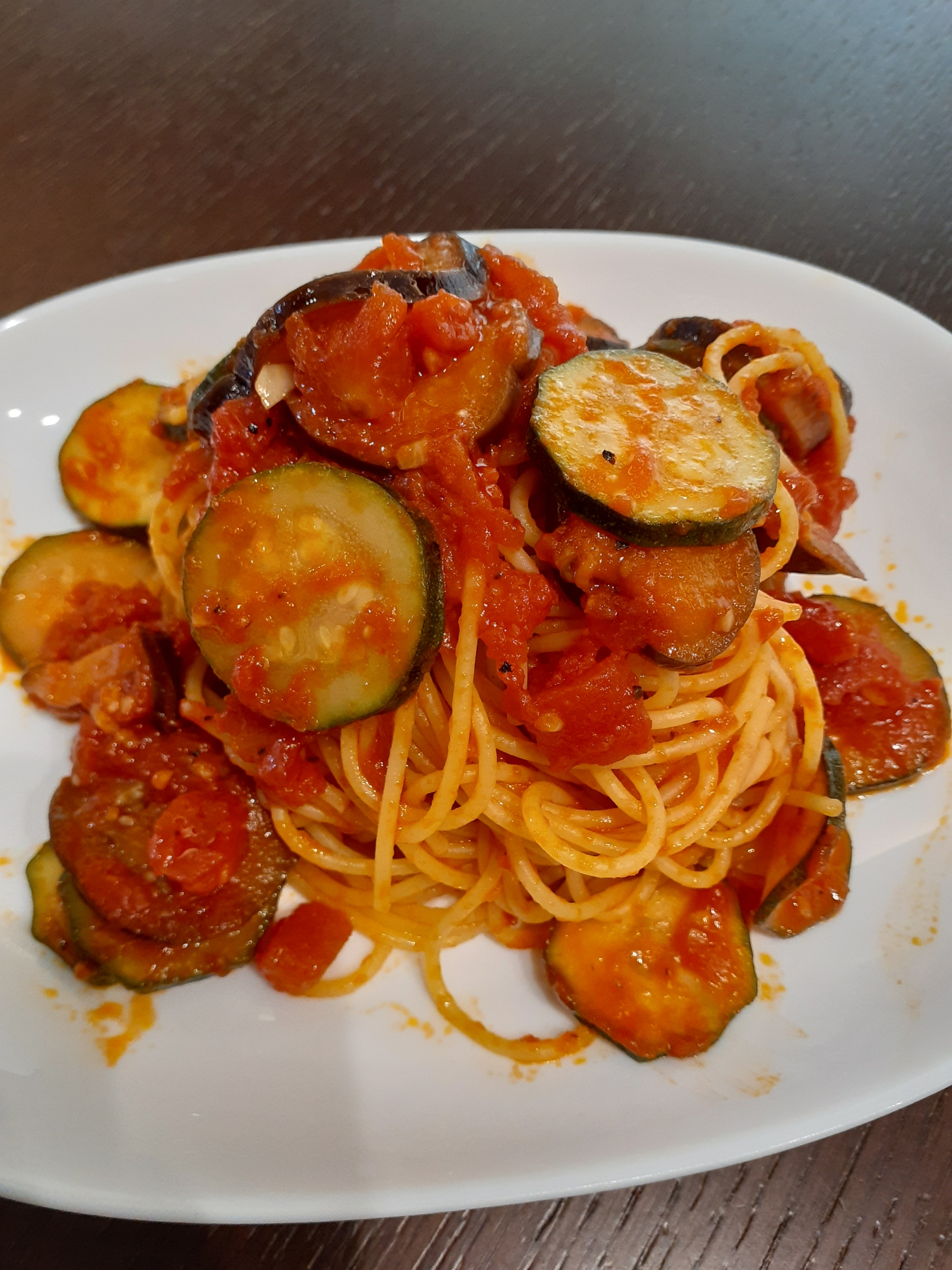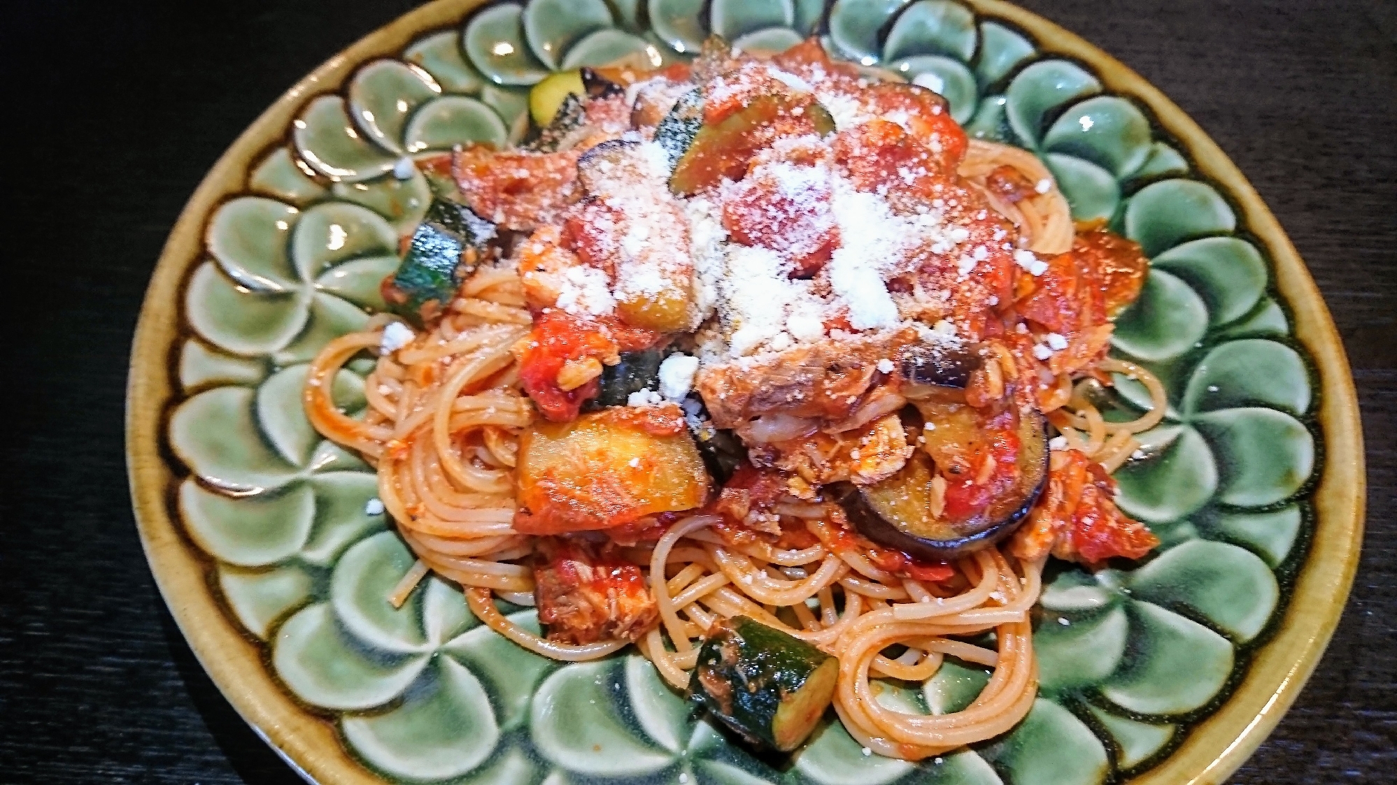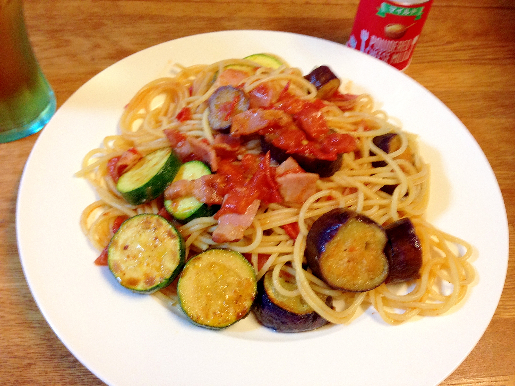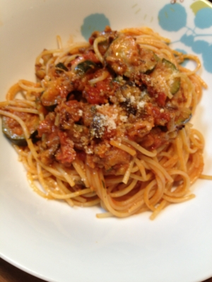 ズッキーニとなすのトマトパスタ 日々なんとなく
