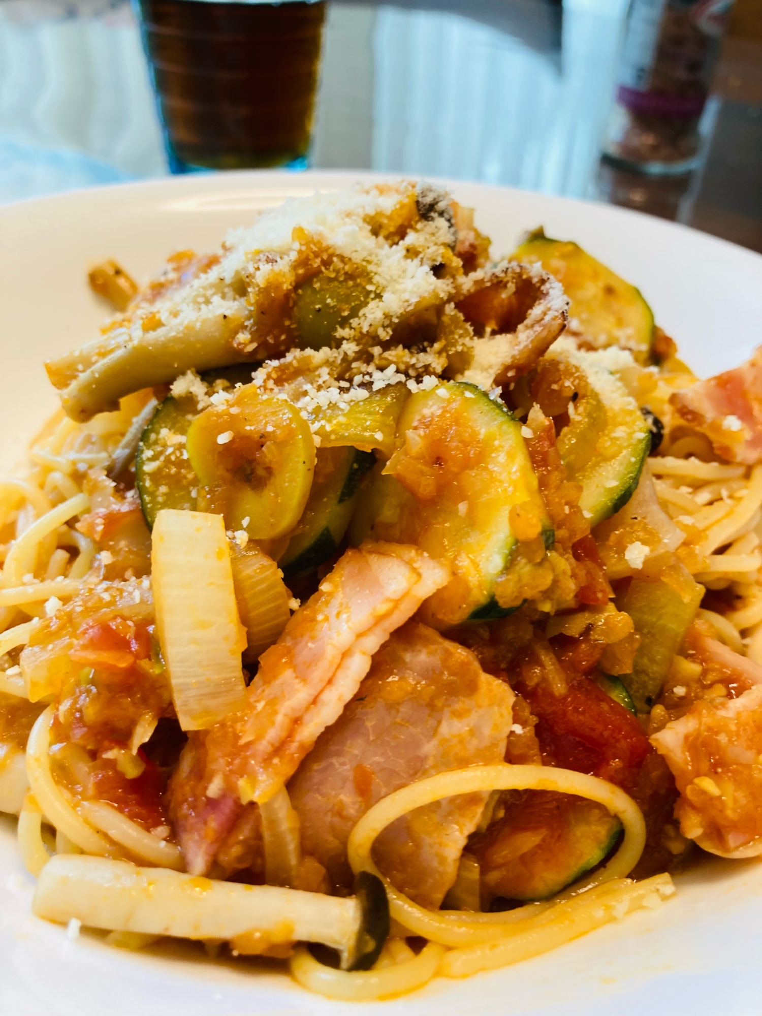 なすとズッキーニ ベーコンのトマトパスタ ひとみさんのおうちごはん よろしゅうおあがり