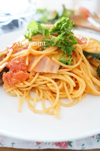 ベーコンとなすとズッキーニのトマトパスタ レシピ 作り方 By コロン S Kitchen 楽天レシピ